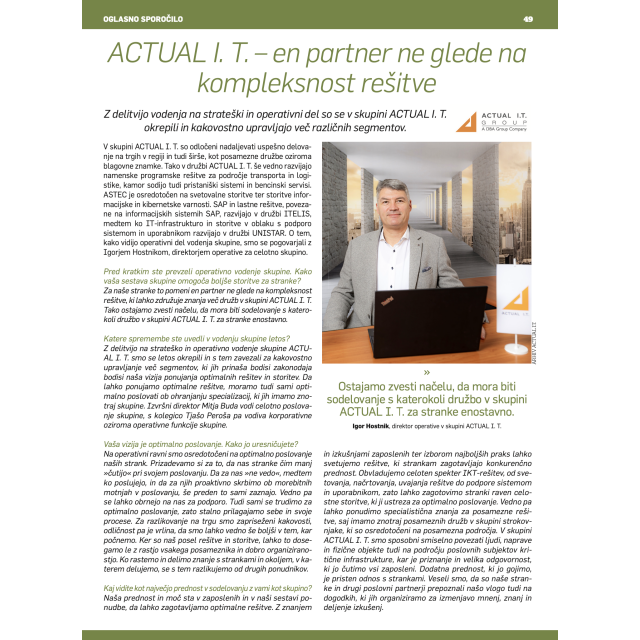 Igor Hostnik, direktor operative za skupino ACTUAL I.T. o novi strukturi vodenja in viziji optimalnega poslovanja.