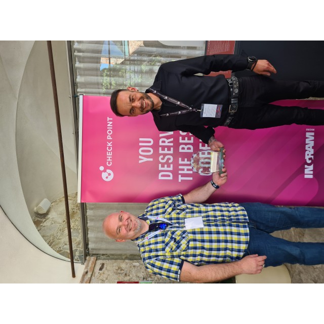 S ponosom pa delimo tudi, da smo na dogodku prejeli nagrado od partnerja CheckPoint za "Partner of the Year for Managed Security Service Provider." Ta nagrada potrjuje našo zavezanost k odličnosti in inovativnosti na področju upravljanih varnostnih storitev.